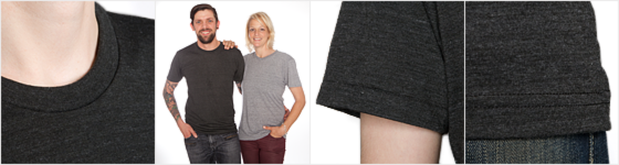 Das Premium-T-Shirt, jetzt noch weicher! American Apparel hat dieses T-Shirt aus einer superweichen Stoffmischung geschneidert: ringgesponnene Baumwolle, Viskose und Polyester sorgen für ein behagliches Tragegefühl. Insgesamt relativ körpernah geschnitten, mit einem eingenähten Nackenband gegen nerviges Kratzen. Stoffdichte: 108g/m². 50% Polyester, 25% Baumwolle, 25% Viskose.